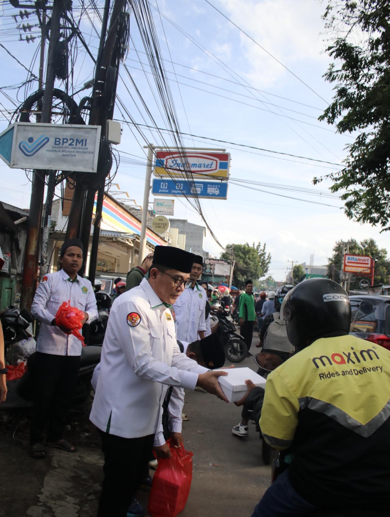 Menjelang waktu berbuka puasa, jajaran pimpinan Kemenag Kota Serang bersama pengurus FKUB dan tokoh lintas agama turun langsung ke jalan untuk membagikan paket takjil kepada masyarakat dan para pengendara yang melintas di depan kantor.